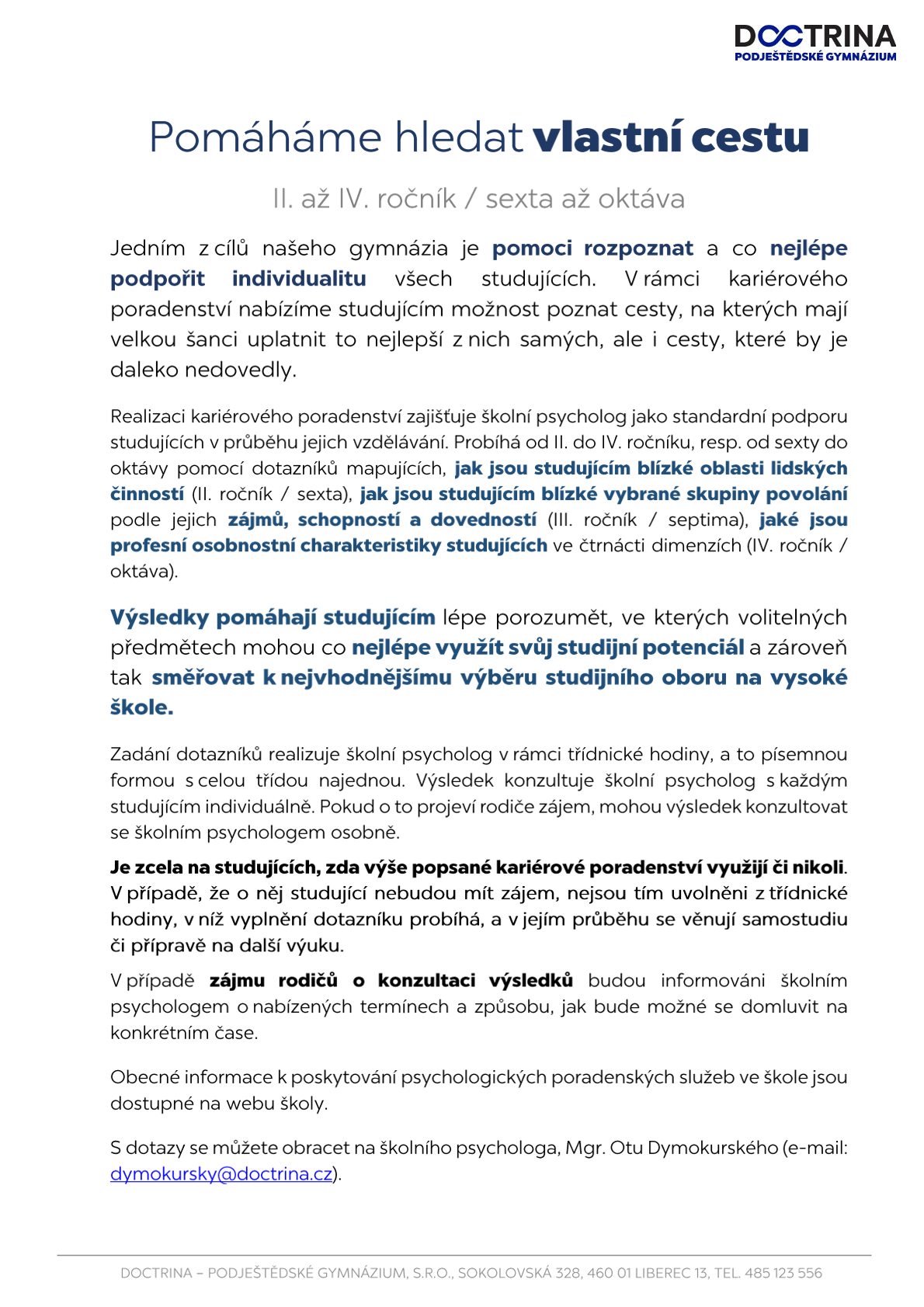 Na vaše dotazy rádi odpovíme 778 970 769 (Po-Pá, 8-16h) gymnazium@doctrina.cz Sokolovská 328, Liberec 14