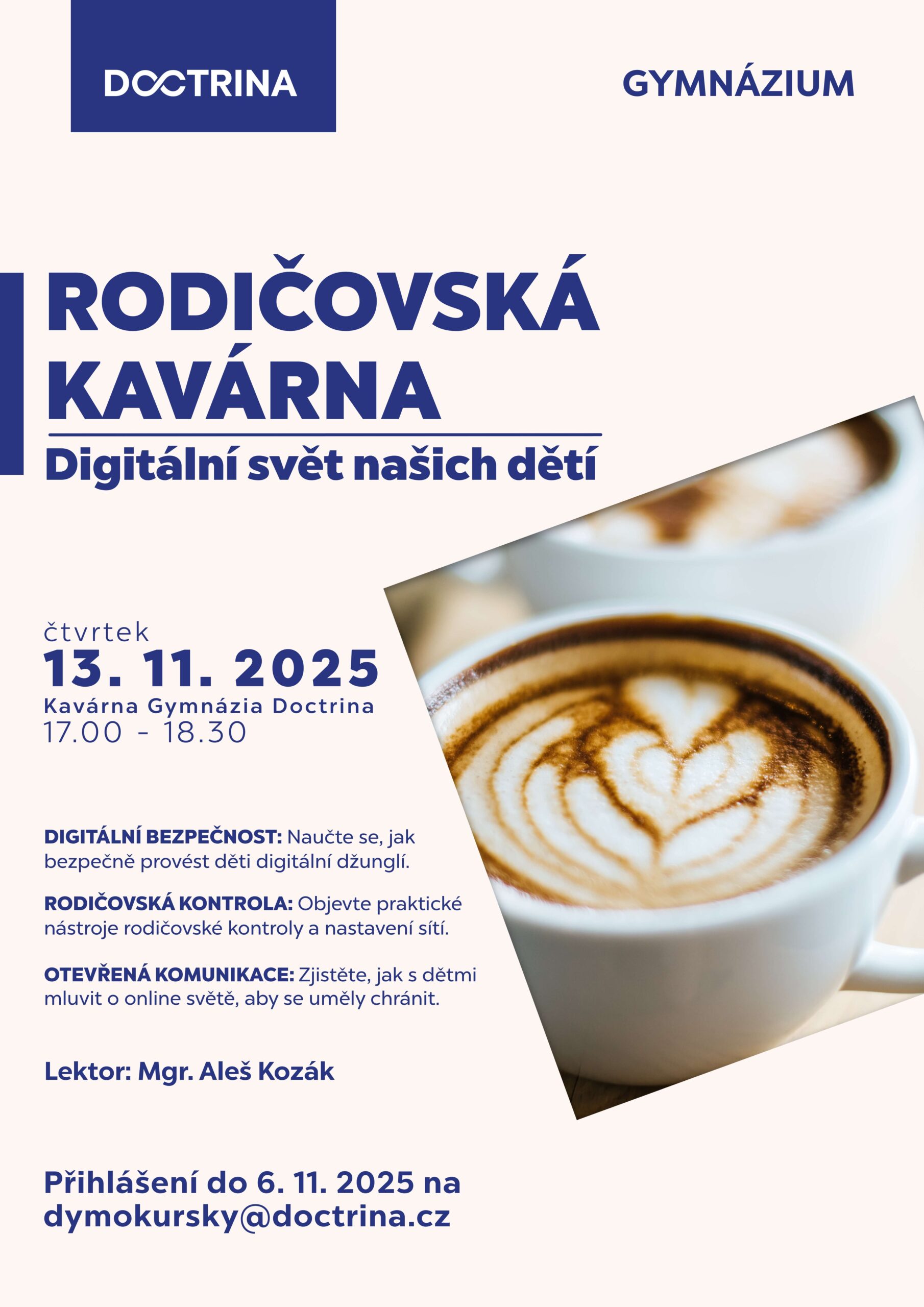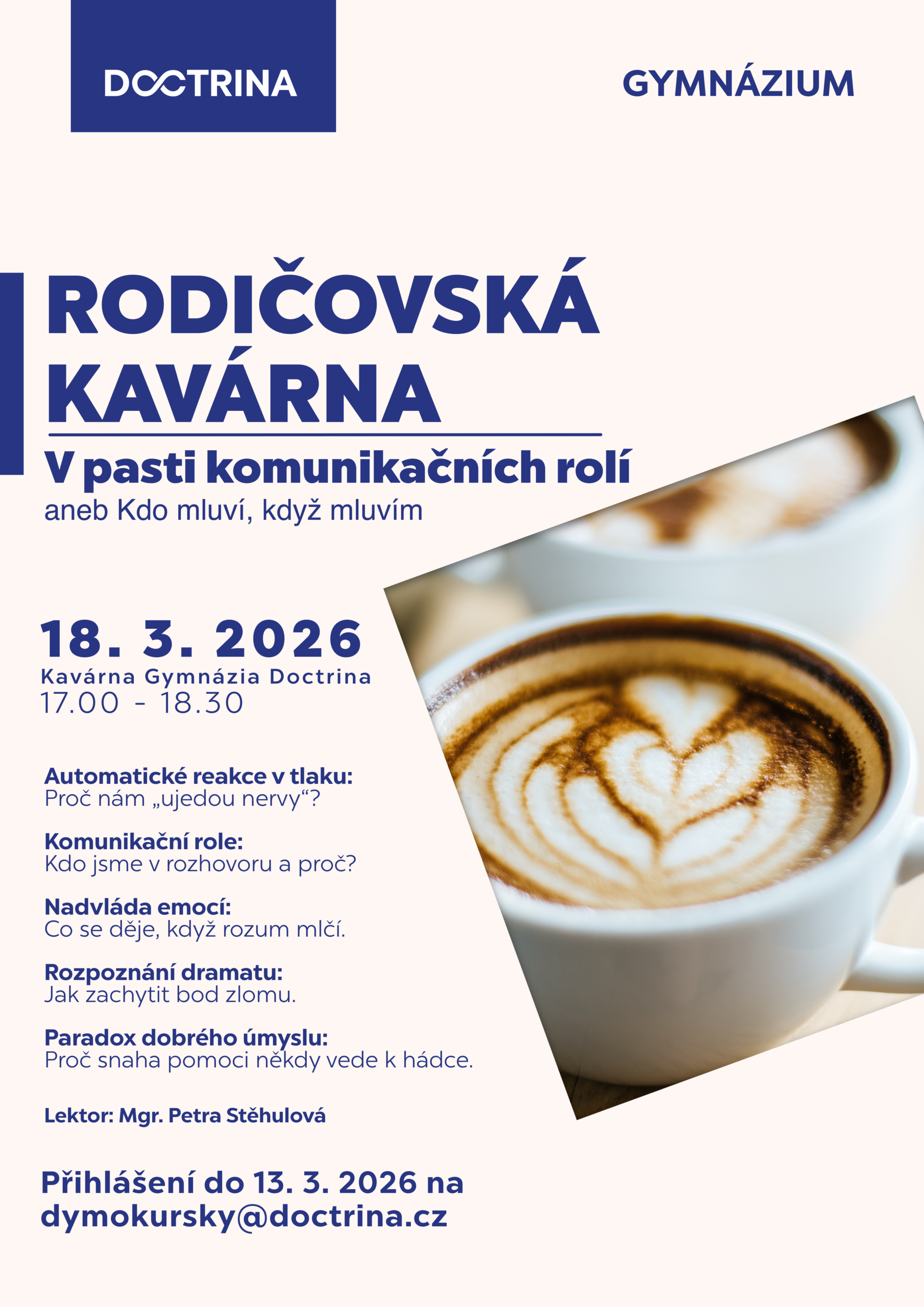 „Velké nadšení, jsem ráda, že dcera má možnost studovat na této škole. Díky vaší kavárně mám představu o průběhu vyučování.“